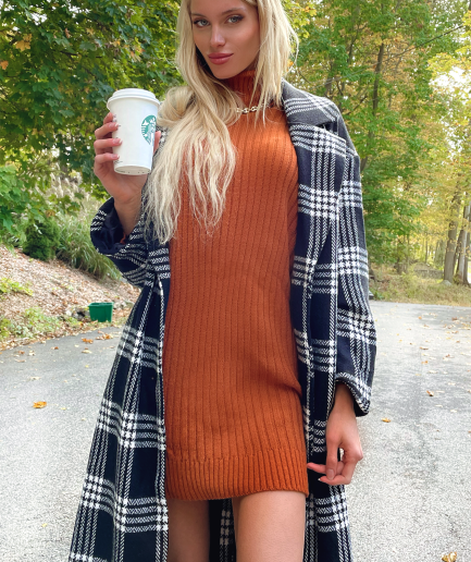 Too Cozy Turtle Neck Sweater Dress – Cognac